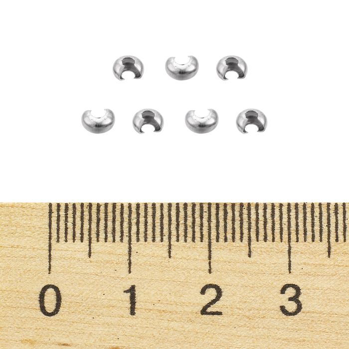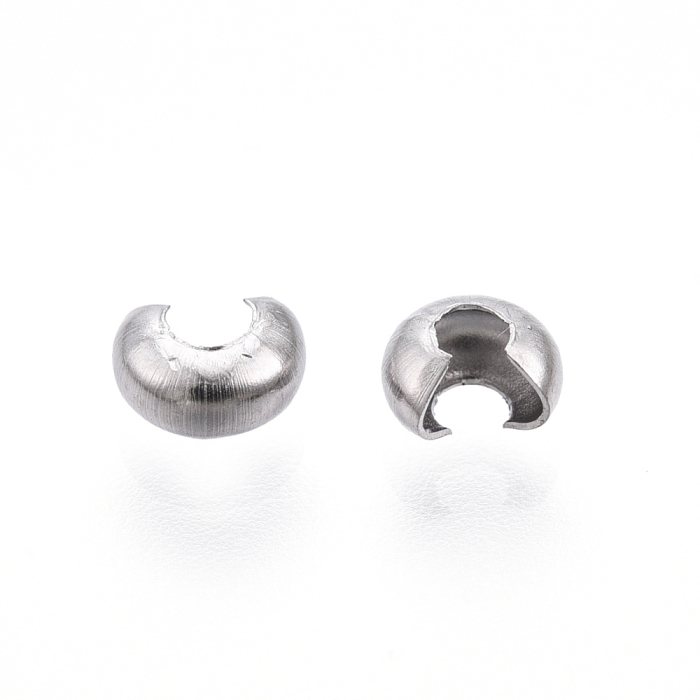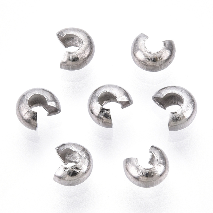 Намистини Кришки Кримпів з Нержавіючої Сталі, Оболонки для Затискних Намистин Стопперів, 3.5х4мм, Отвір 1.4мм, (УТ100031173)