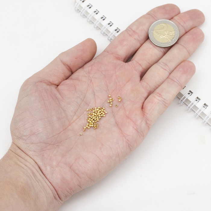Намистини Нержавіюча Сталь Круглі Порожнисті, Позолота 18К, 2х2мм, Отвір 0.8мм, близько 500шт/упаковка, (УТ100031270)